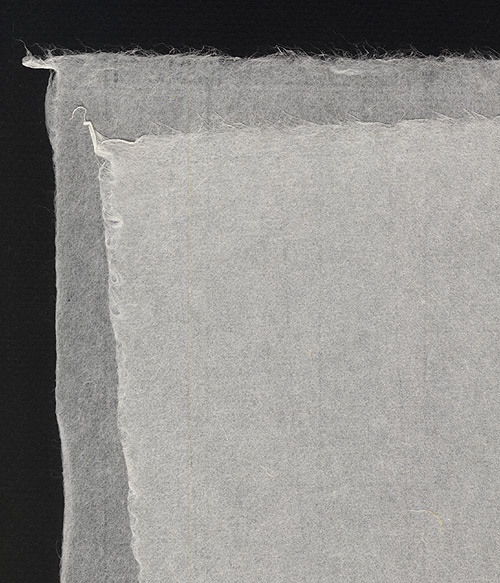 Jusqu’à ce que l’archéologie contredise son mythe, Cai Lun (50 – 121), haut fonctionnaire chinois à la cour des Han orientaux (25 – 220), était considéré comme l’inventeur du papier. Pourtant, à l’époque où cette figure incontournable de l’empire chinois forge sa légende, le papier est déjà utilisé et son secret jalousement gardé depuis au moins deux siècles. Il faut attendre le VIe siècle pour qu’il atteigne le Japon, via la Corée. La technique se perfectionne si bien que les papetiers japonais effeuillent bientôt une pâte qui produit en séchant ce que nous appelons encore aujourd’hui le papier washi. Ce papier blanc, diaphane et velouté est confectionné à partir de fibre de mûrier.