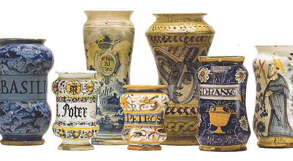 Régulièrement de forme cylindrique, ces vases sont désignés par le terme « albarelle ». Ils désignent pour le Moyen-Orient comme pour l’Occident des récipients en céramique destinés à conserver épices, confitures et onguents.